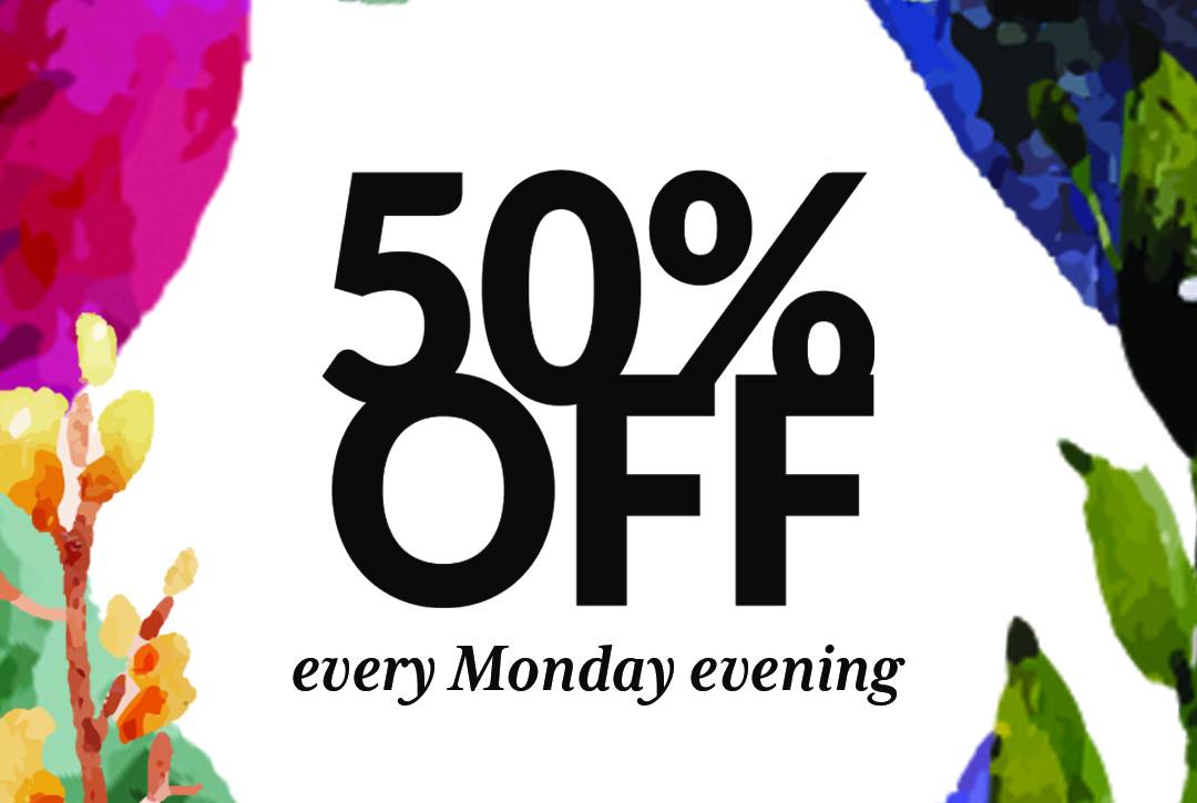All main courses are included, along with our salads and steaks. Monday’s just got a whole lot better…